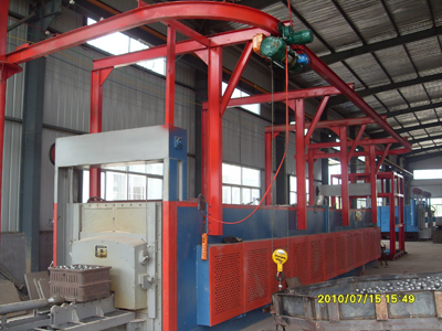 鋼球熱處理爐是用推桿式依靠推料機(jī)間隙把放在軌道上的爐料(或盤料)推入爐內(nèi)和推出爐外。工件在爐膛內(nèi)運(yùn)行時(shí)相對(duì)靜止,加熱后出爐淬火時(shí),有的是料盤傾倒,把爐料倒出;有的是工件連同料肋一起出爐或進(jìn)入淬火槽內(nèi)冷卻。這類爐子由于對(duì)工件的適應(yīng)性強(qiáng),便于組成生產(chǎn)線,廣泛應(yīng)用于淬火,正火,退火,回火,滲碳和滲氮等熱處理。